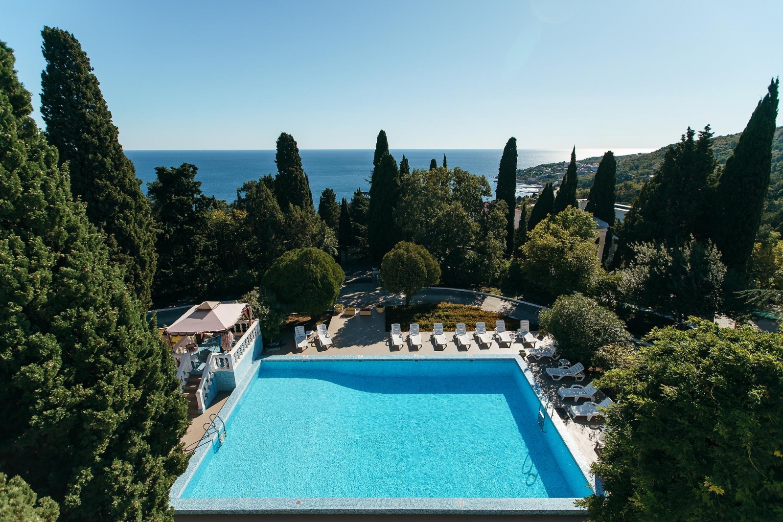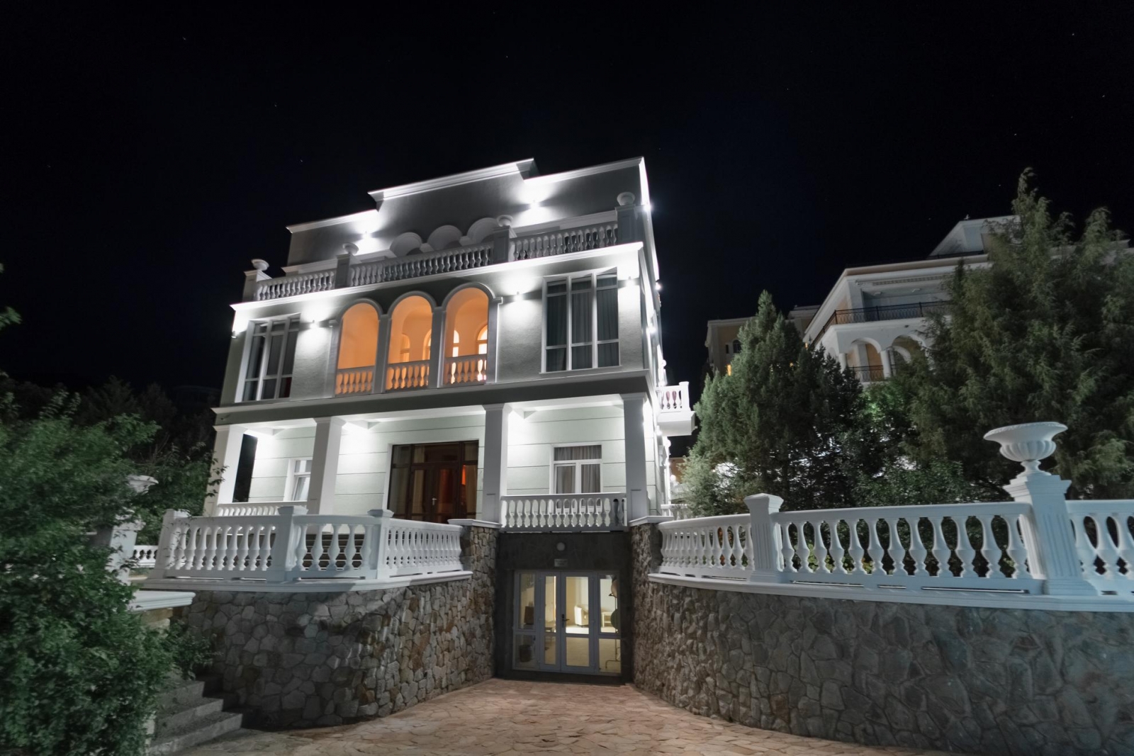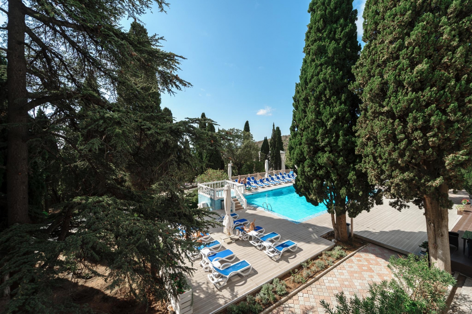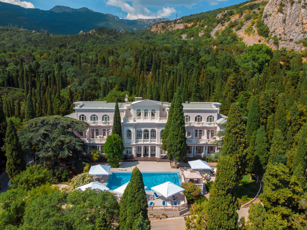 Отель «Вилла Голубой Залив» находится в Лименской долине поселка Симеиз, который входит в зону Большой Ялты. Преимущество этого уголка Крыма – целебный микроклимат, сочетание морского и горного воздуха с целебным действием можжевеловой рощи. Сейчас в составе отеля «Вилла Голубой Залив» (Симеиз) появилось еще три современных здания, стоящие близко друг к другу. Корпус «Вилла Лимена XIX» - исторический 3-х этажный, лифт отсутствует; 1- этаж- детская комната и комната PlayStation, 2-й этаж - ресторан «Филибер». В корпусе:27 номеров. Корпус «Вилла Шипилова» - современный 3х этажный корпус. В корпусе:24 номеров. Корпус «Вилла Мальцева» – на 1 этаж стойка регистрации, современный корпус, 5 этажей, оснащен лифтом. В корпусе:28 номеров. Корпус «Вилла Филлибера»: новый 3-х этажный корпус отеля, выполненный в едином архитектурном ансамбле с концепцией старинной виллы, нет лифта. Он состоит из 5 просторных номеров с эксклюзивным дизайнерским интерьером в приятных сдержанных тонах: 3 однокомнатных и 2 двухкомнатных (категории Премиум Комфорт и Премиум Люкс). При входе в корпус вы попадете в небольшой холл с каминной зоной. Это чудесное место для отдыха, где можно смотреть на потрескивающий огонь, мечтать и строить планы. А панорамные окна нового отельного корпуса на 2-м и 3-м этажах позволят наслаждаться морским пейзажем в любое время дня и ночи! Корпус «Вилла Рахманинова» - новый современный корпус 2021г. В корпусе: 3 номера, без лифта. Перед виллой расположен малый открытый бассейн. Корпус «Вилла Шулейкана» - новый современный корпус 2021г. В корпусе: 9 номеров, без лифта. В целом отель «Вилла Голубой Залив» в Крыму предоставляет 99 номеров для комфортного проживания гостей отеля. Все номера гостиницы укомплектованы необходимой мебелью. В каждом – собственный санузел с просторной ванной или душем. Все номера оснащены кондиционерами, ТВ и Wi-Fi, мини-баром и сейфом, другими удобствами. Для удобства гостей предусмотрены ортопедические матрацы. Территорию отеля украшает роскошная лесопарковая зона, в которой насчитывается до 2 тысяч деревьев и множество различных кустарников. Она благоустроена, украшена цветниками, беседками и скульптурами, имеет зоны для отдыха и постоянную охрану. Для гостей отеля предназначены 2 открытых и 1 крытый бассейны. Открытые бассейны функционируют с мая по октябрь. Работают экскурсионное бюро, теннисный корт, площадка для игры в баскетбол, детская игровая площадка. Всего в 800 метрах от отеля находится аквапарк «Голубой залив». В ресторане «Филибер», на вилле 19 века с видом на парк и море, подают фирменные блюда крымской кухни: местная рыба, рапаны, мидии, устрицы, крымские овощи и фрукты. Ферма по выращиванию мидий находится рядом с Симеизом и в километре от отеля. Вы сможете встречать закат с видом на Черное море и можжевеловый парк с бокалом крымского вина и эксклюзивными закусками. Отель предлагает проживание с различными планами питания. В стоимость номера входит завтрак. За дополнительную плату, гости могут заказать как полупансион, так и полный пансион (все включено). Данные типы питания предоставляются в ресторане «Ганский», который находится на первом этаже корпуса «Вилла Мальцева». Также на территории отеля посреди можжевеловой рощи расположен гриль-бар на открытом воздухе «Терраса» В летний период бесплатный трансфер осущес